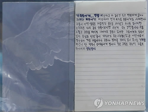 (서울=연합뉴스) 김도훈 기자 = 15일 오후 서울 용산구 국방부에서 열린 동부전선 GOP 총기사고 수사결과 브리핑에서 공개된 임병장 작성 메모. 2014.7.15상황이야 어찌되었든 결론은 살인마