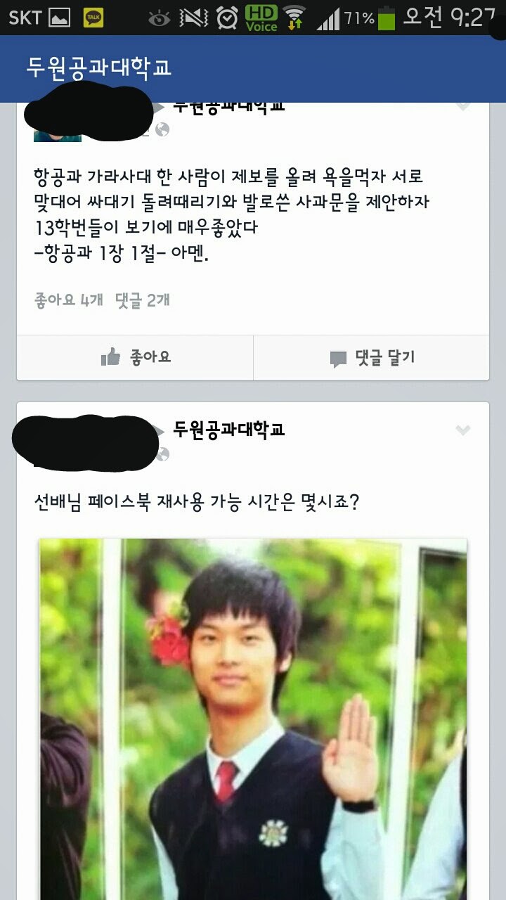 두원공과대학 항공서비스과 페북페이지 근황