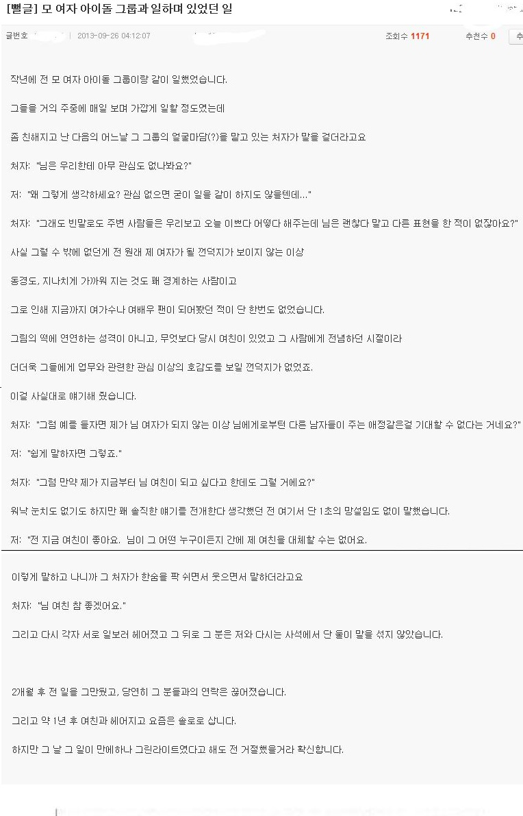 엠팍유저가 여자 아이돌과 썸탄 썰