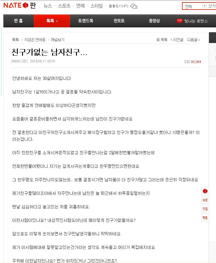 결혼할 남친이 친구가 없어요..